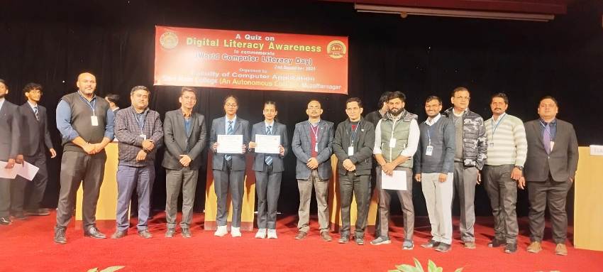 A quiz competition on “Digital Literacy Awareness” was organized at Shri Ram College under the aegis of the Computer Department. The chief guest for this competition was Dr. Prerna Mittal, Principal of Shri Ram College. Five teams participated in this competition. The competition included the following rounds: Computer Fundamentals, IT Trends, Computer History, and Visuals. In the first round, 25 questions were asked on Computer Fundamentals. In the second round, questions related to current IT trends were asked. The third round focused on computer history. In the fourth and final round, participants were shown pictures of prominent personalities and asked to identify them and the companies they were associated with.